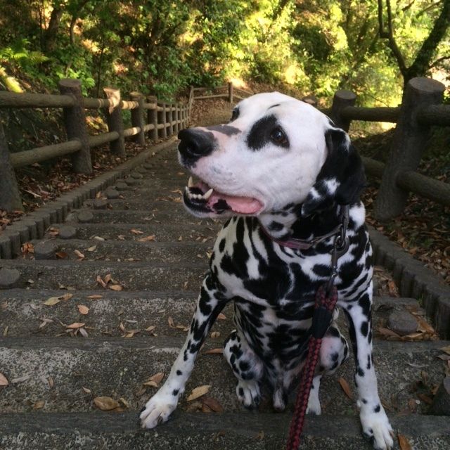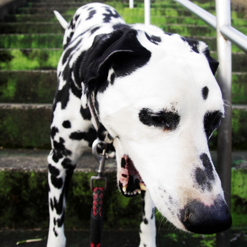 白黒のダルメシアンは、緑をバックに撮影すると結構映える^^