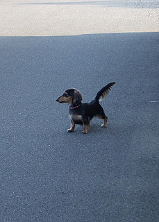 ミニチュアダックスフンドです。ミニチュアダックスフンドはかわいいですよね。吠えますけど・・・・(笑) それにしても、このワンちゃん、ひとりで走りまわっていました・・・。(自由に出回ることができるようになっているのか、それとも・・・・。)