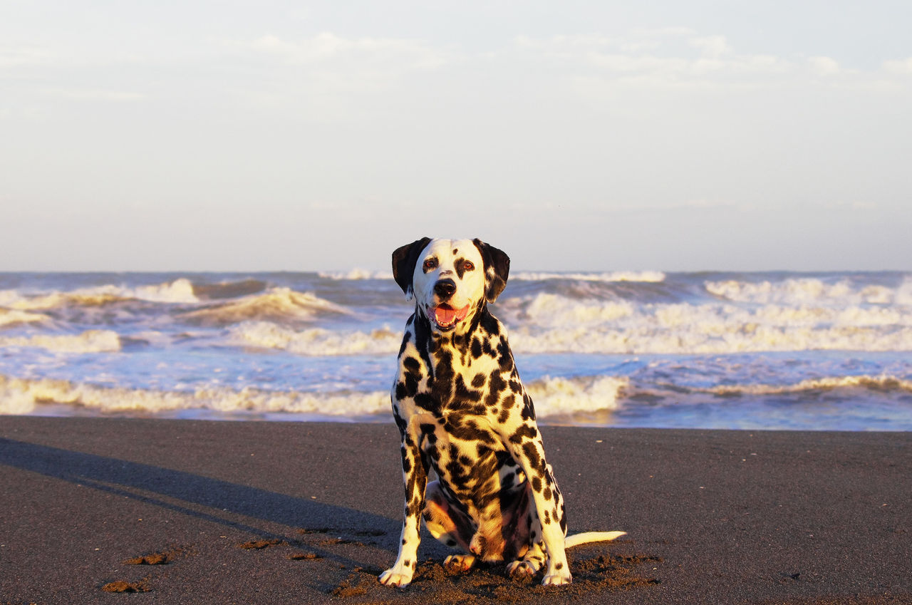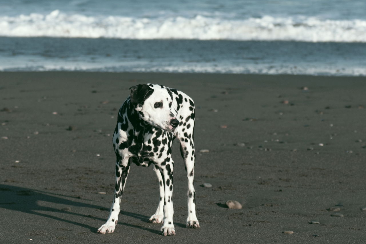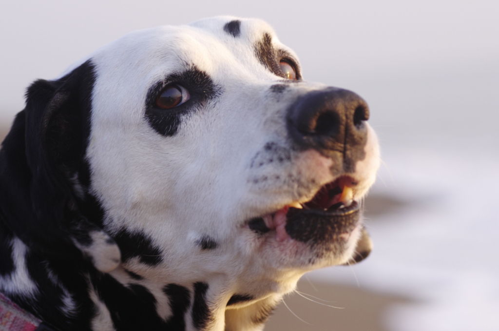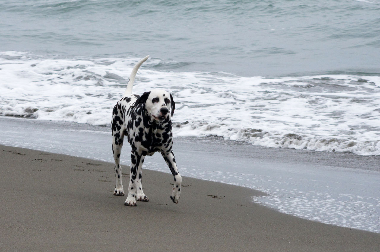 浜辺につくと、案の定といいますか、ヒラメか何かを狙っている釣り人たちが数人釣りを楽しんでおりましたので、ボスは浜辺に降りることができませんでした。この写真は、ボスを堤防に座らせて、撮ったものですが、やはり来年の2月には9歳になるダルメシアンだけあって、少し老けてきましたね・・・^^ 上から撮りますともう少し若く見えるのですが、首やあごが入るように撮ってしまうと年齢を隠せないようです(人間と同じかも・・・(笑))。