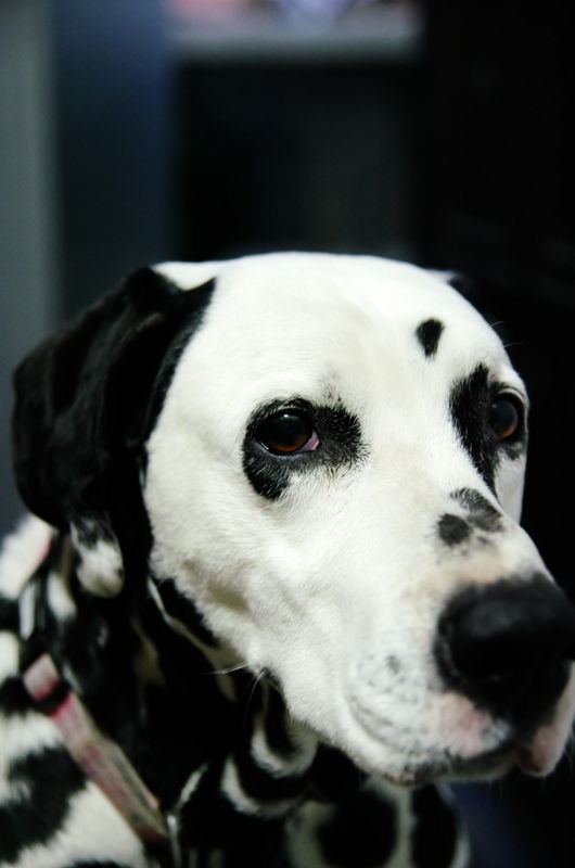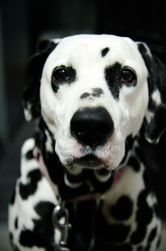 ちょっとご機嫌ななめのようですが、今日の散歩は5キロ程をゆっくり歩いて行きましたので、それなりに満足だったようです^^ スクウェアに切り取ったのは、いずれアイコンに使用する予定だからであります(笑)でも、これでは、ちょっと仏頂面ですね^^; イケ面ダルメシアンらしくありませんので、撮り直しですね(笑)