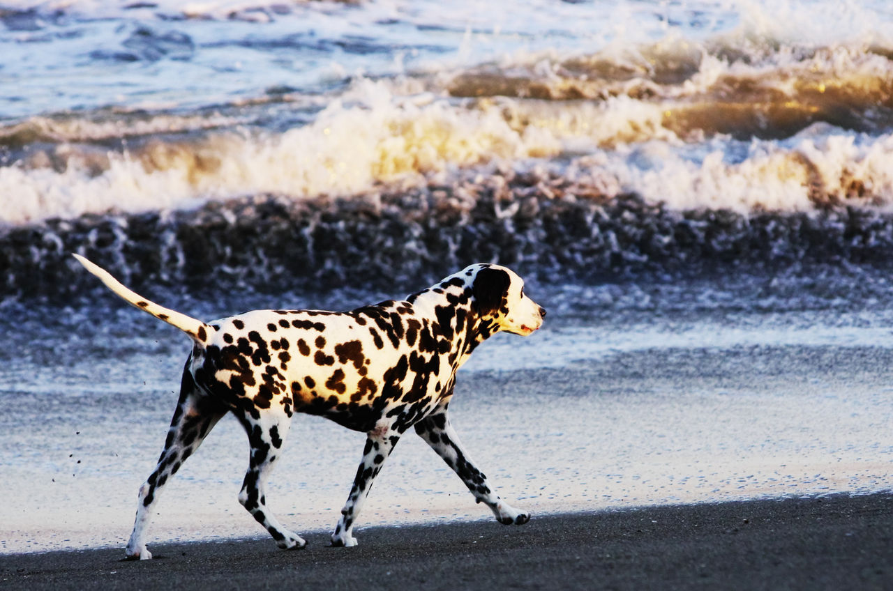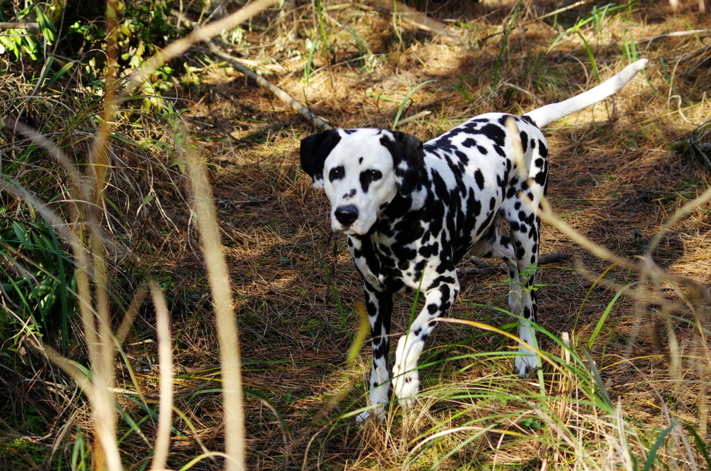 この画像は、ダルメシアンのボスを流し撮りしようと試みた1枚。飼い主としては気に入っているものの、ブレブレであるため、誰も見向きもしないような写真である。遊具がもっと左側に配置されていれば、白黒とカラフルな遊具の対比で、それなりにアートな1枚になっていたかもしれないが・・・^^;