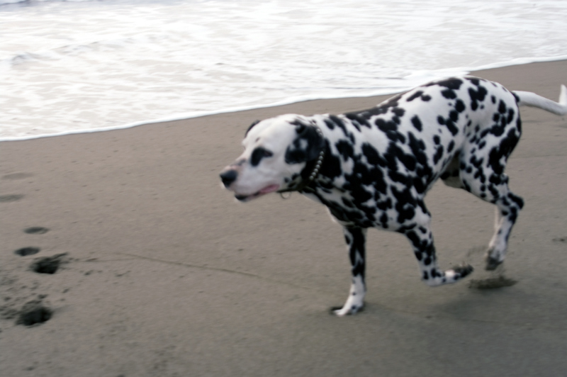 この写真は、完全にブレている。それにボスの腰のあたりが丸過ぎる(笑)(前足が、砂浜についていない方が良さそうな気がするのである・・・。)