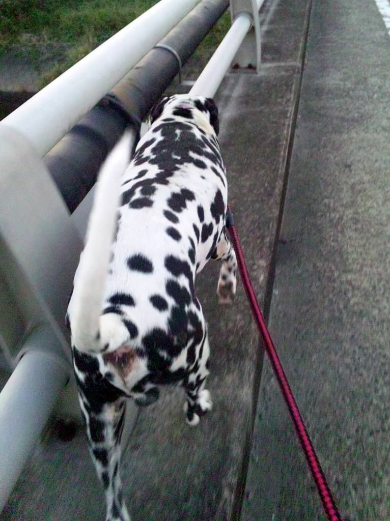 こん橋を渡っときは、通行人やら車んじゃまにならんごつ欄干の横を歩くボス。太めになっちょってん、ちゃんとこん場所で、おすわりがでくっちゃがぁ(笑)
