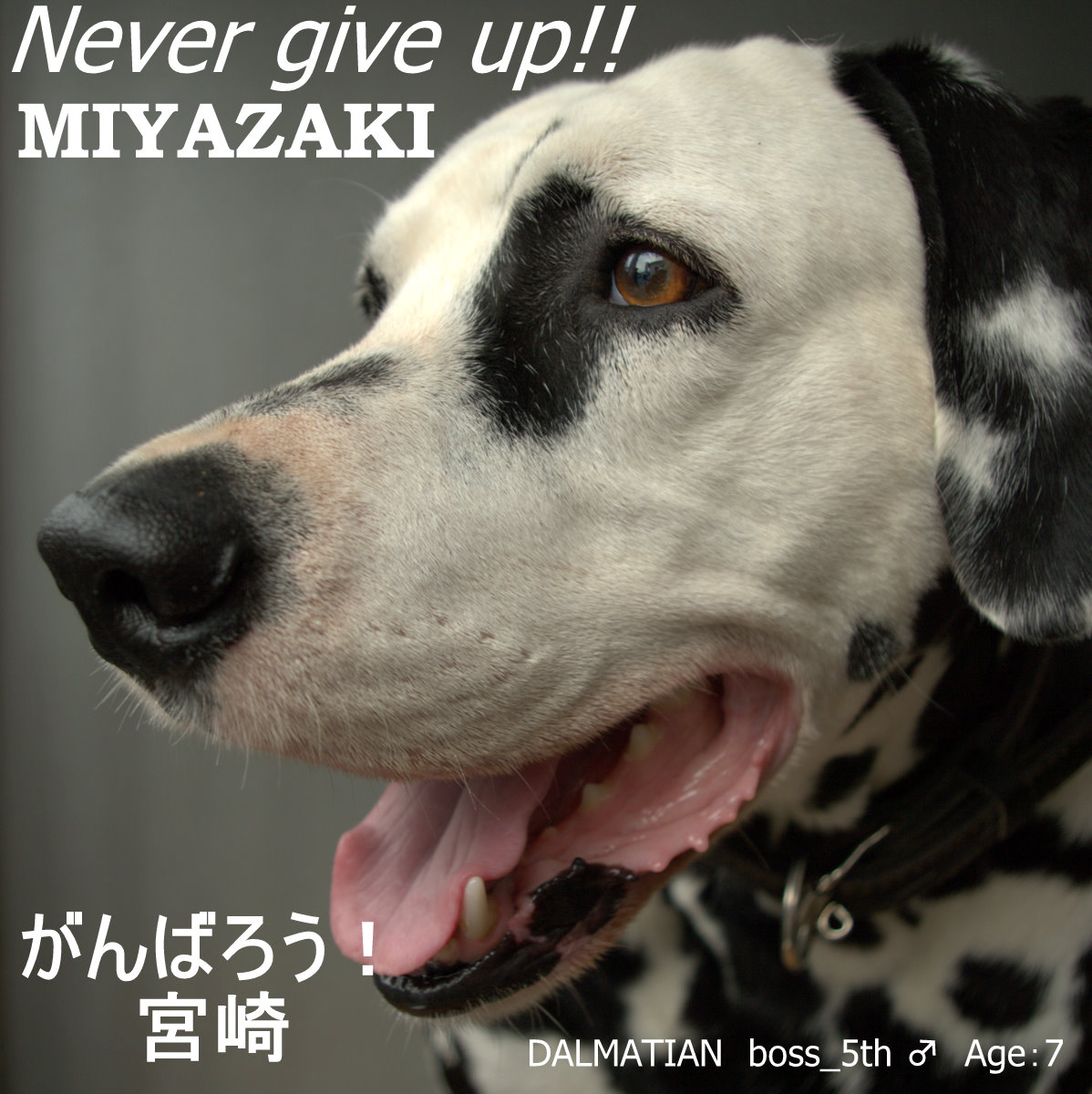 我が家のダルメシアンにモデルになってもらい、宮崎県を応援する写真を作ることもできるが、公開できる場所はここしかない。ということで、これから何回かに渡って、ボスにモデルをやってもらうことにした。